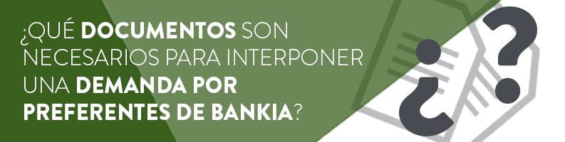 Autor: Jesús MarÃa Ruiz de Arriaga RemirezSon muchos los preferentistas afectados que están valorando acudir a la vÃa judicial y presentar una demanda por preferentes de Bankia para recuperar sus ahorros. Si es tu caso, debes tener en cuenta que necesitarás una serie de documentos que detallamos a continuación.